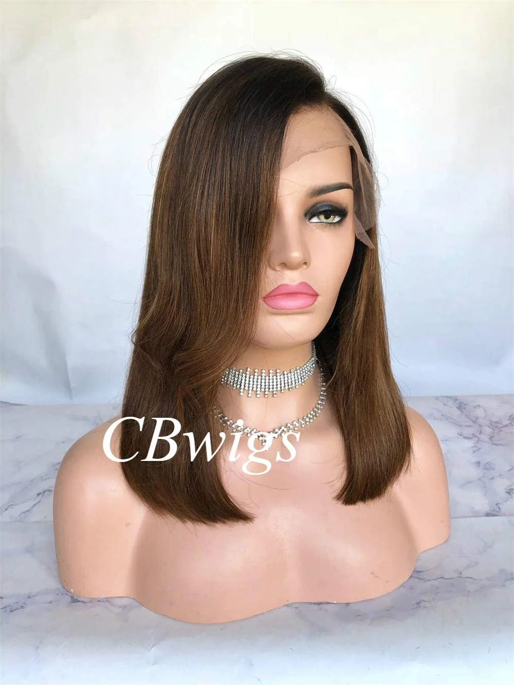 • Hair Texture:Short Bob Straight, Hair Density:150%,Hair Color:Ombre Brown ,Lace Color:Light Brown in stock